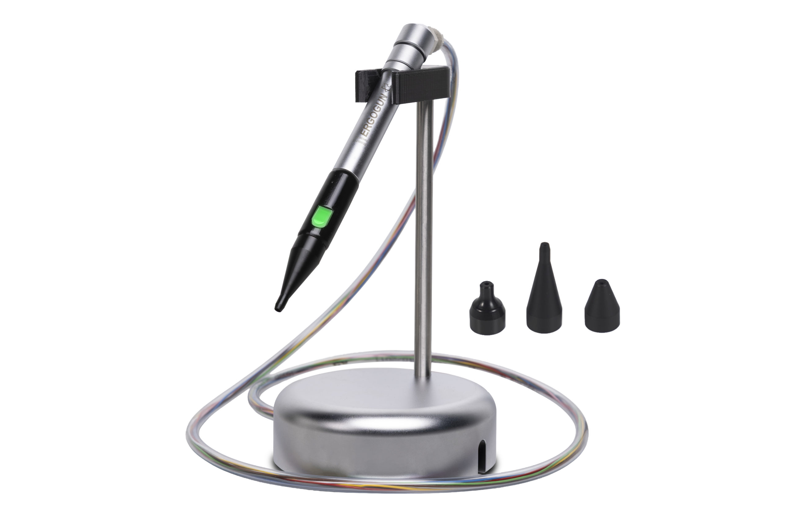 Ultrakompakte ionisierende Ausblaspistole, flexible und mobile Ausführung, die je nach Bedarf an verschiedenen Arbeitsplätzen installiert werden kann. Der elektronisch geladene Luftstrom entfernt statische Aufladungen von Bauteilen, löst Staub und verhindert, dass dieser erneut angezogen wird. LINKiX®-kompatibel.